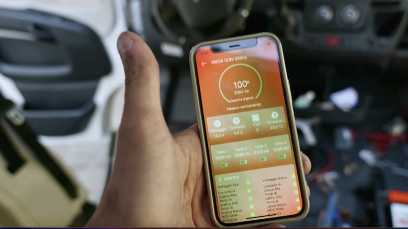 La batteria che ci offrivano, una LiFePO4 12V da 200Ah, avrebbe sostituito degnamente le nostre due batterie al gel da 95Ah l’una, donandoci notevoli benefici.